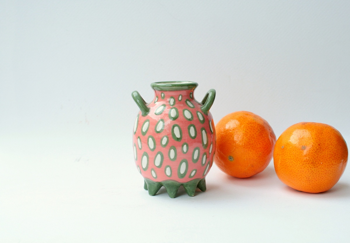 Słowa kluczowe: mały wazon ceramiczny, ceramika handmade, wazon na kwiaty, dekoracje do wnętrz, ręcznie robione.
