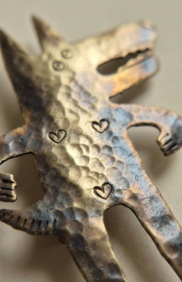 Broszka powstała w małej pracowni, gdzie każdy szczegół jest ręcznie opracowywany. Wilczyca ma swoją historię – może właśnie wychodzi na nocne polowanie, a może po prostu lubi pozować na Twojej marynarce. Mosiadz nadaje jej ciepły, złocisty blask, który świetnie komponuje się z jesiennymi i zimowymi kolorami.