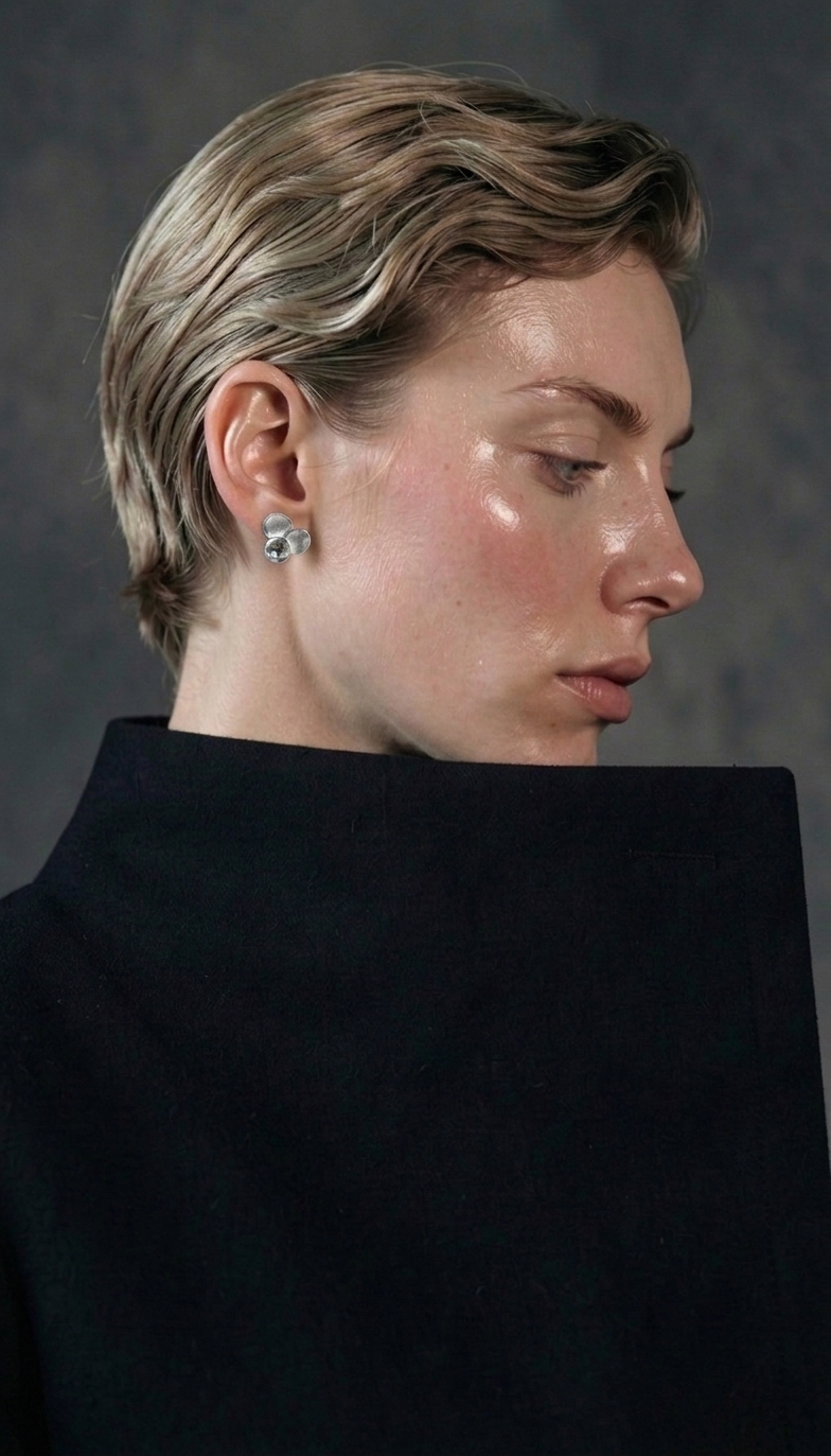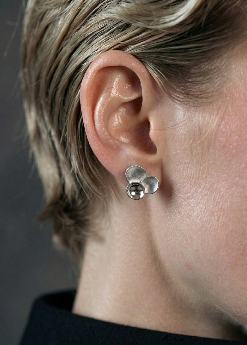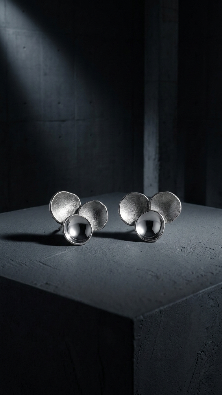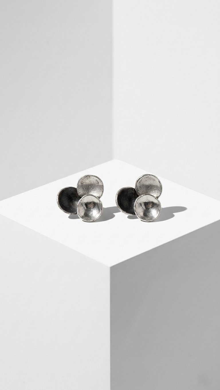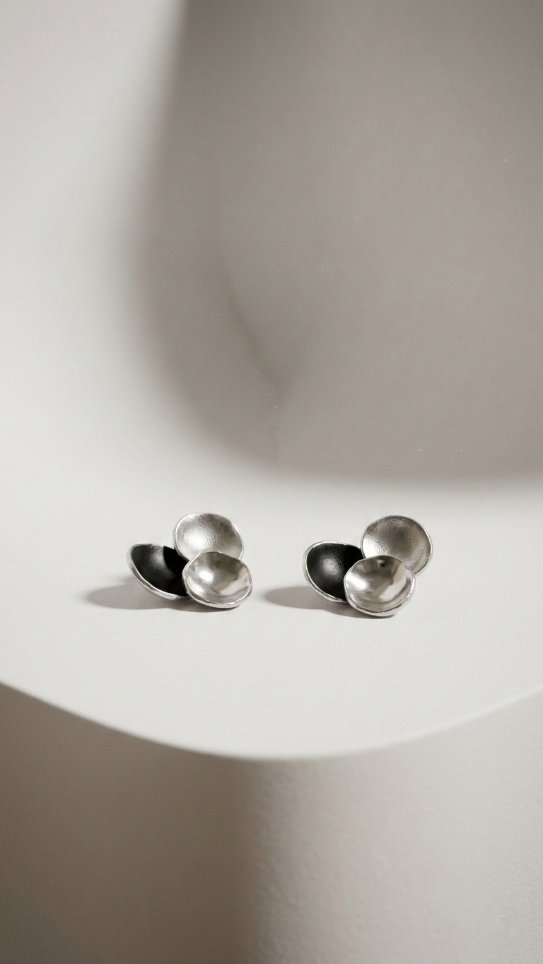 Minimalistyczne kolczyki w kształcie bąbelków wykonane z neizylbru ze sztyftem ze srebra. Delikatna, nowoczesna biżuteria, która doskonale komponuje się zarówno z codziennymi, jak i eleganckimi stylizacjami.
