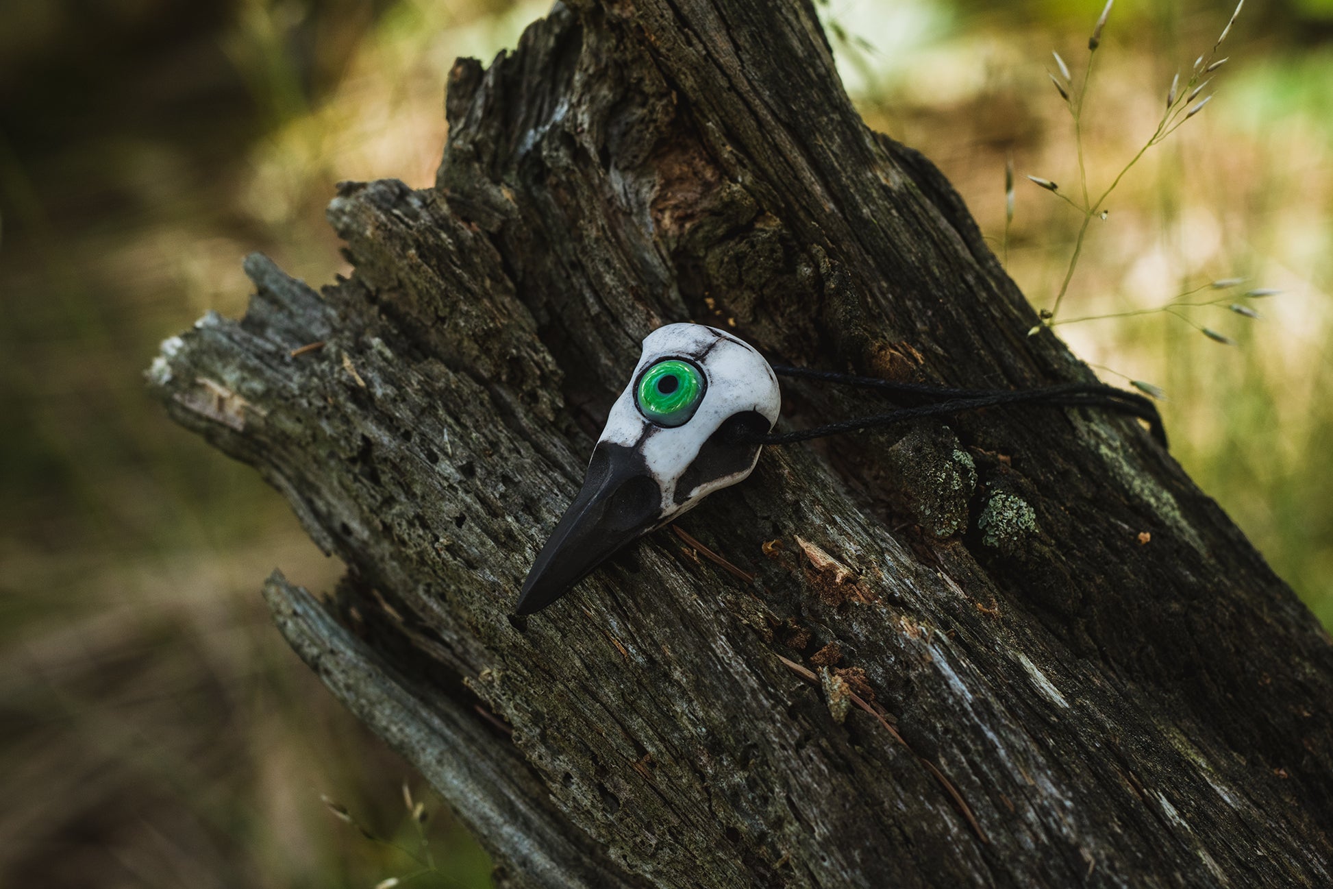 Wisiorek Kruk z zieloną kulą - ręcznie robiony