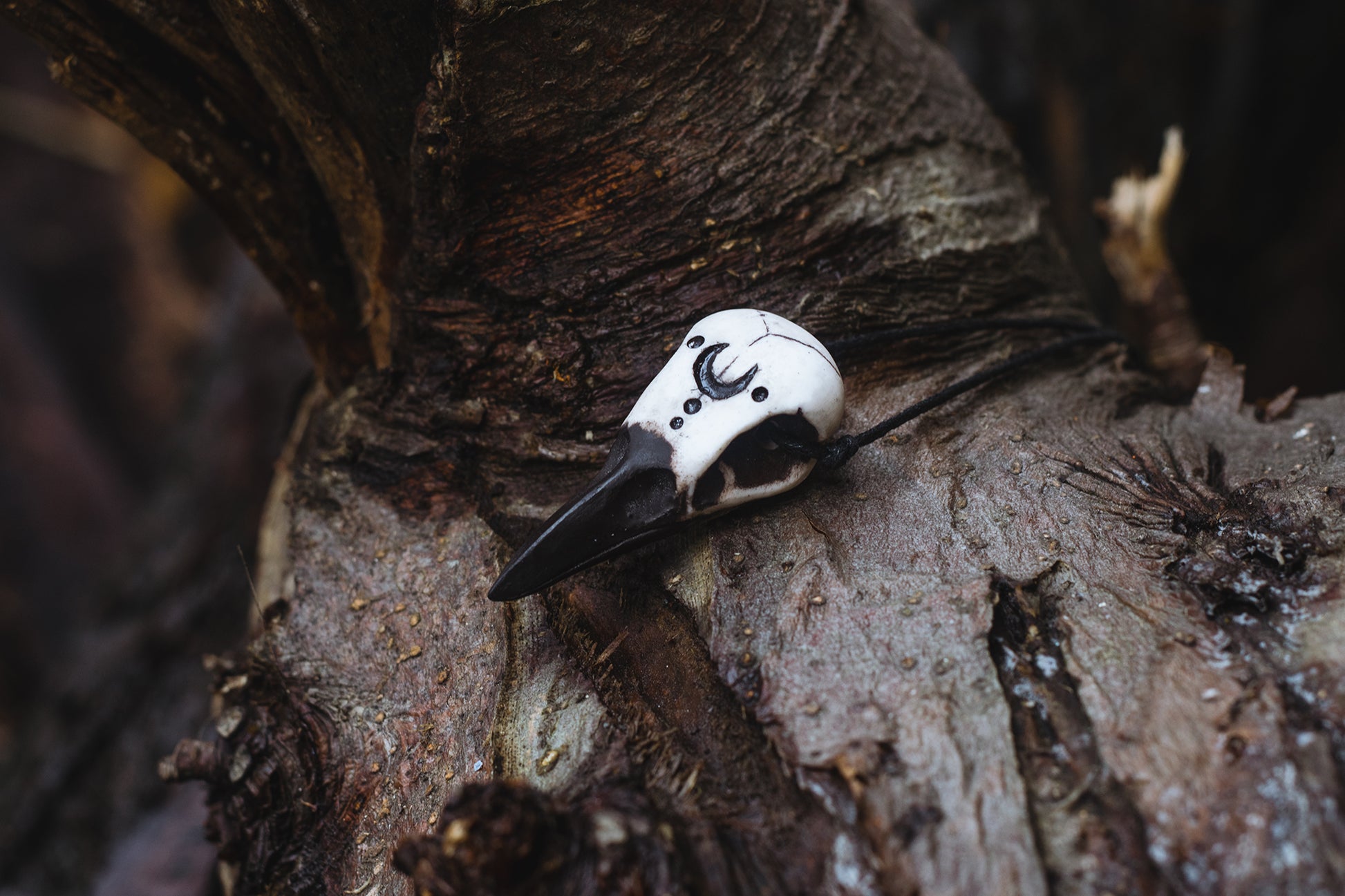 Wisiorek czaszka Kruk z księżycem - ręcznie robiony